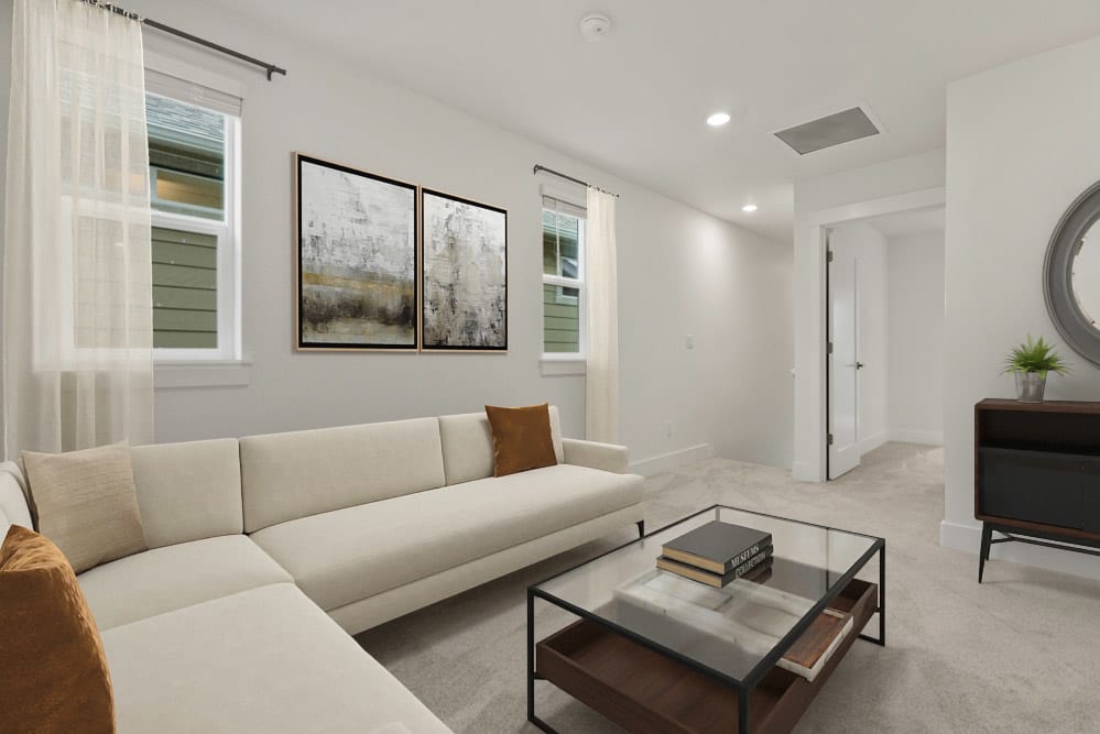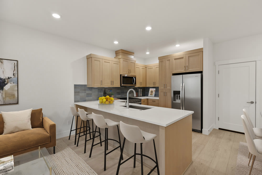 Townhomes are attached to the house next door, most commonly with a rear garage and shared alley access. Every house has a front yard with side yards available on select homes.