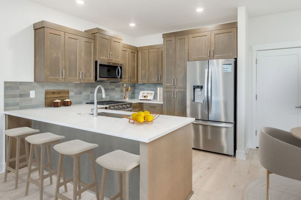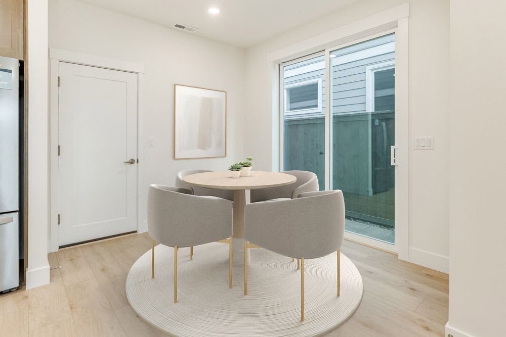 Townhomes are attached to the house next door, most commonly with a rear garage and shared alley access. Every house has a front yard with side yards available on select homes.