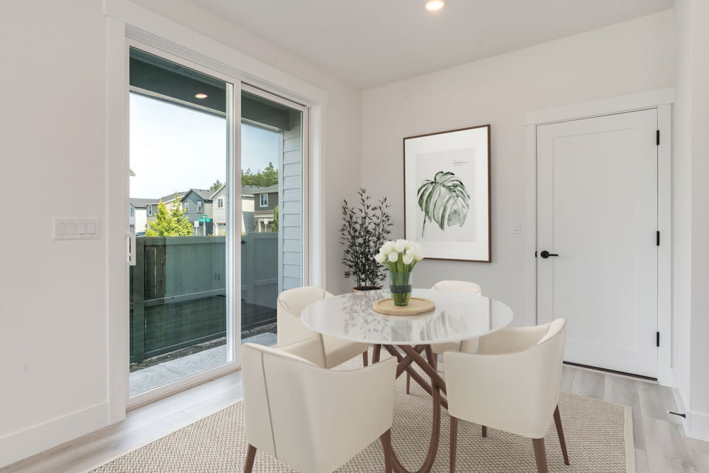 Townhomes are attached to the house next door, most commonly with a rear garage and shared alley access. Every house has a front yard with side yards available on select homes.