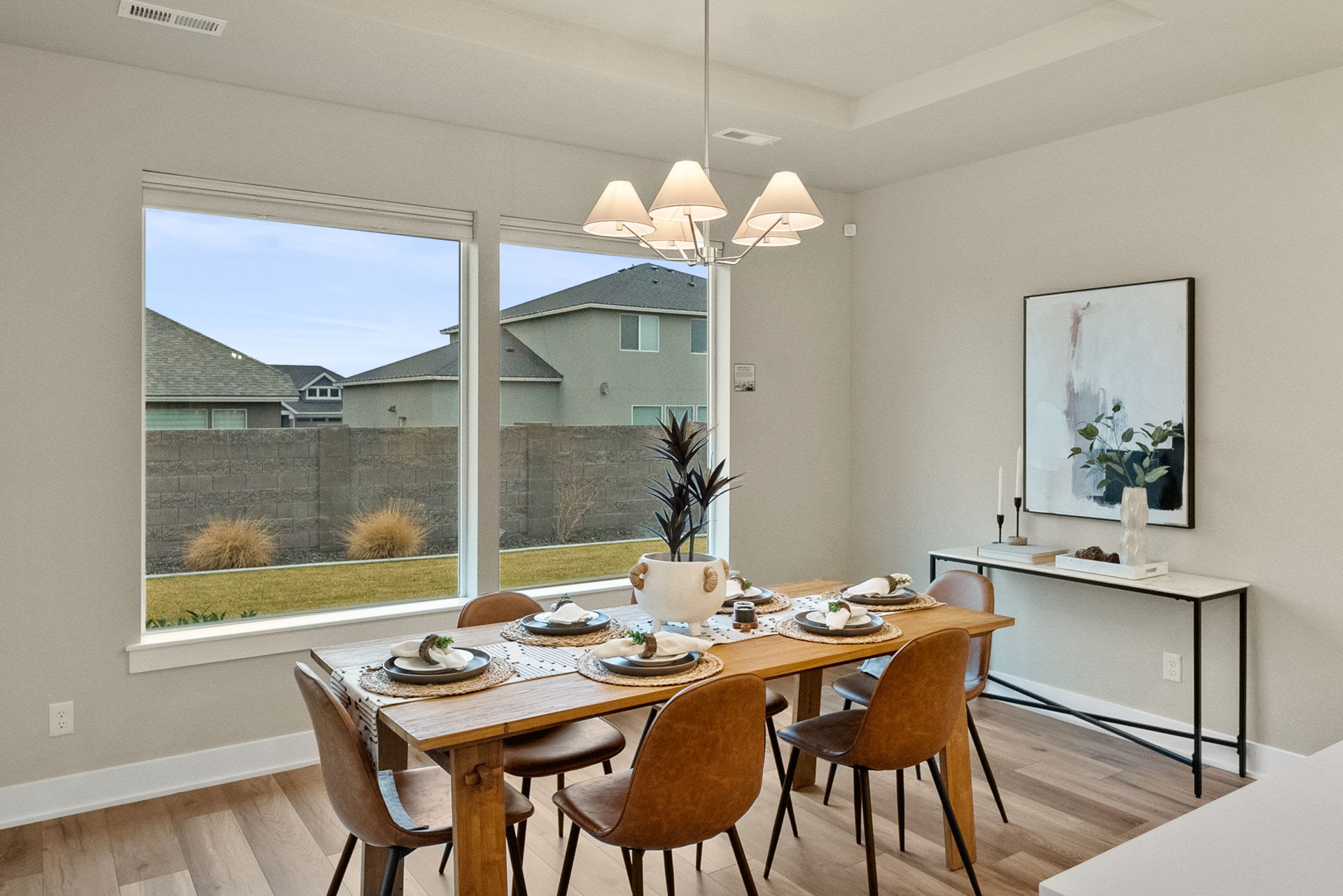 Traditional homes have a standard 2 or 3 car garage, with a front, side, and backyard.